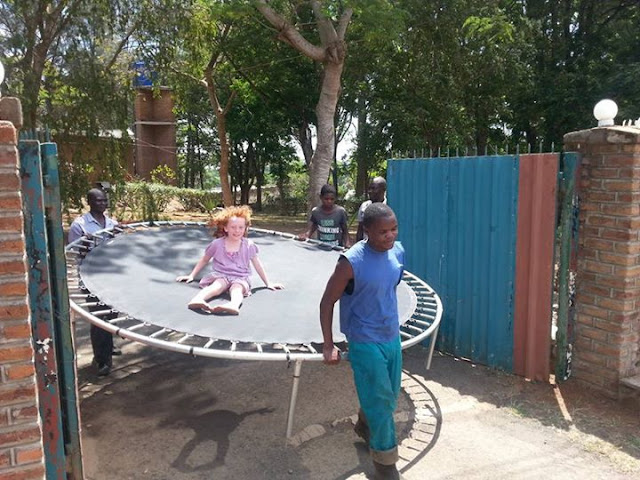 Perhaps you can see the METAL SPRiNGS better in this shot. This shot was taken when the family bought a trampoline for their garden in Malawi and it is being moved with Annika on it from one house to their home.
